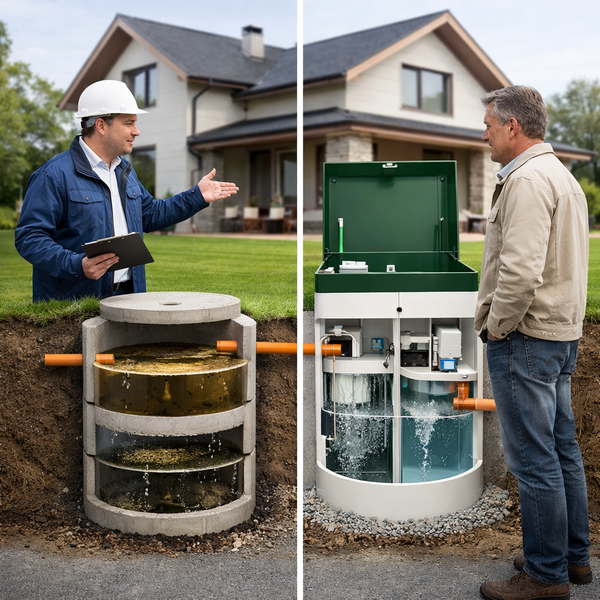 Построили дом, и встал вопрос с отведением стоков из дома, проблема была с очень высоким уровнем грунтовых вод и сомнения что система будет работать в таких условиях. Решение - монтаж современной системы канализации с принудительным выбросом очищенной воды из станции. Итог: сомнения развеяны, станция работает исправно, ода уходит по уровню грунтовых вод.