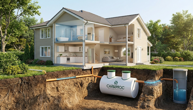 У нашего клиента была проблема с постоянным вызовом ассенизаторской машины, в доме установлены фильтры очистки воды с регенерацией, большие залповые сбросы и нет возможности отвести промывку в отдельный слив, приняли решение установить станцию САЙБЕРЛОС 5, как показала практика, решение было правельным, станция работает без проблем справляясь с большими нагрузками по залповым сбросам и за счет дренажной системы отвода чистой воды из станции решился вопрос с частым вызовом ассенизатора.